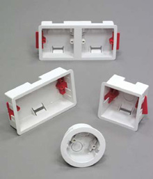 Fast fix dry lining boxes are manufactured to BS5733. They feature a large exterior flange to prevent slippage into the cavity and will fit a board thickness of between 6.35-15mm. The back of the box can be used as a template to mark the cavity hole knockout.